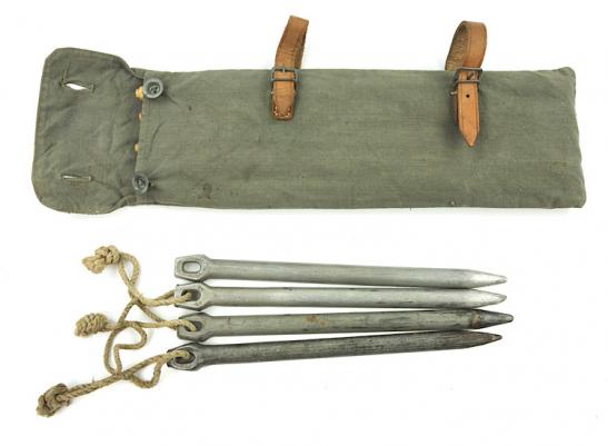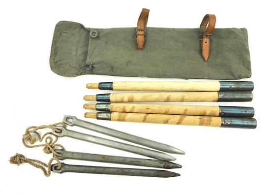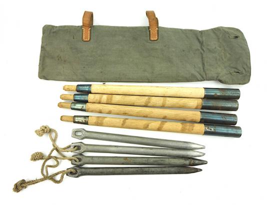 Wehrmacht Tentpoles and Peg's in Pouch Very nice near mint Wehrmacht tentpoles and tent peg's in original Wehrmacht marked tentpoles/peg pouch. In very good condition.