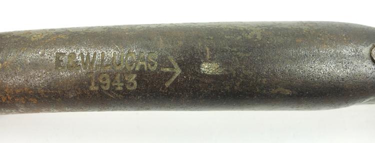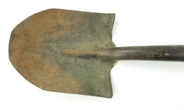 British WW2 Shovel Very nice big British shovel, to dig fox wholes "Broad Arrow" marked, made by “E&W Lucas”;and dated “1943” British Infantry soldiers did carry them behind there small pack. In very good condition.