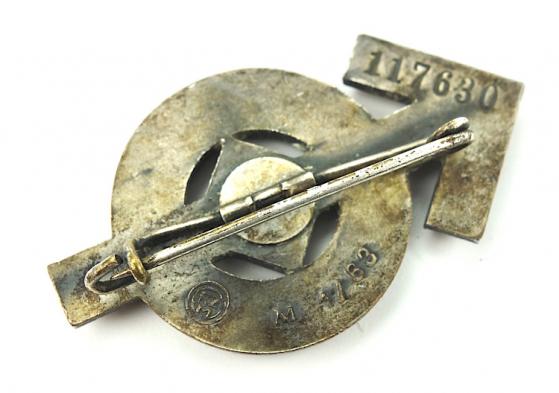 Very nice metal numbered badge Hitler-Jugend "Leistungen in der H-J" “RZM M1/63” marked which is “Steinhauer & Lück, Lüdenscheid” and numberd “117630” Overal In good condition.