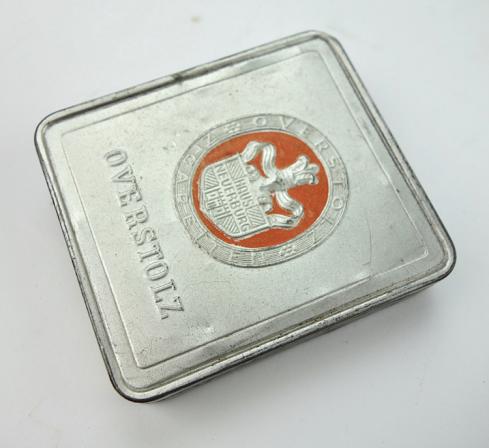 Wehrmacht cigarettes Packaging Nice used metal can for Wehrmacht cigarettes. Cigarette brand “Overstolz” special packaging to protect cigarettes againt moisture In used but very goid condition.