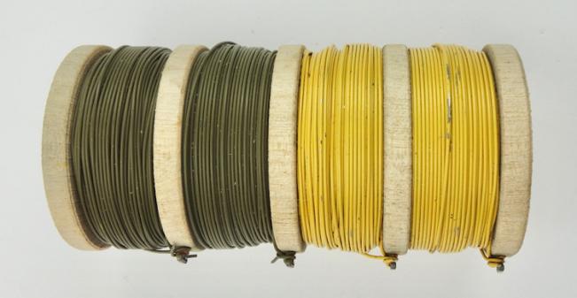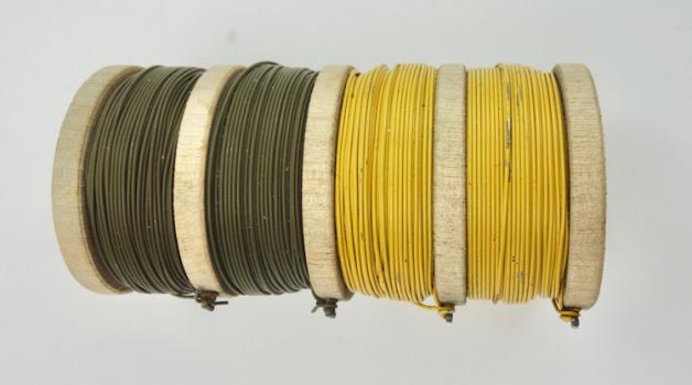 US WW2 Booby Trap Trip Wire Original wooden bobbin with yellow and green trip wire. for demolition and building booby traps. For the US WW2 combat engineers and special forces In very good condition.