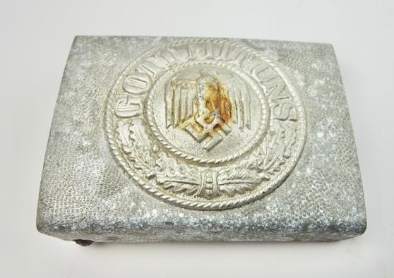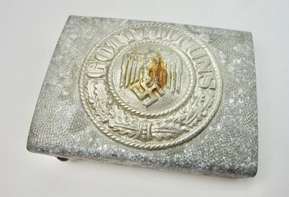 Wehrmacht Dress Tunic Belt Buckle Nice used Wehrmacht dress tunic belt buckle. 2 pieces made belt buckle, used on the dress tunic during parades and official events. In used but good condition.