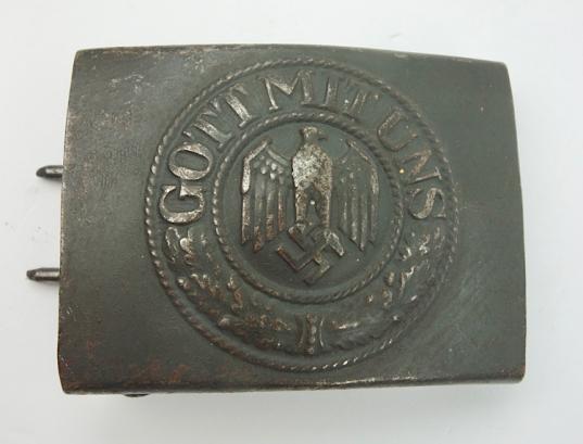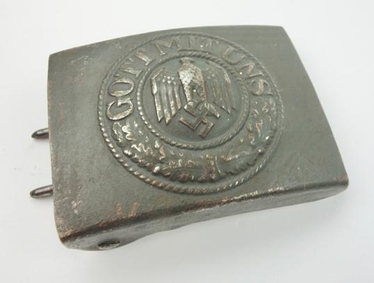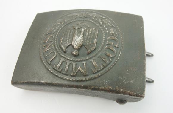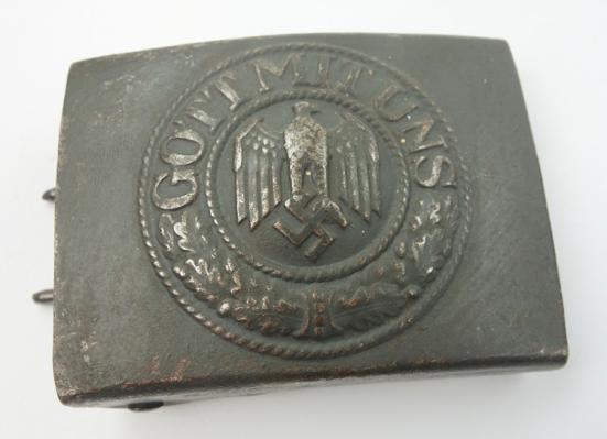 Wehrmacht steel Belt Buckle Nice used Wehrmacht steel belt buckle in 95% of its original camo paint. Un-marked but very nice used buckle in very good condition.