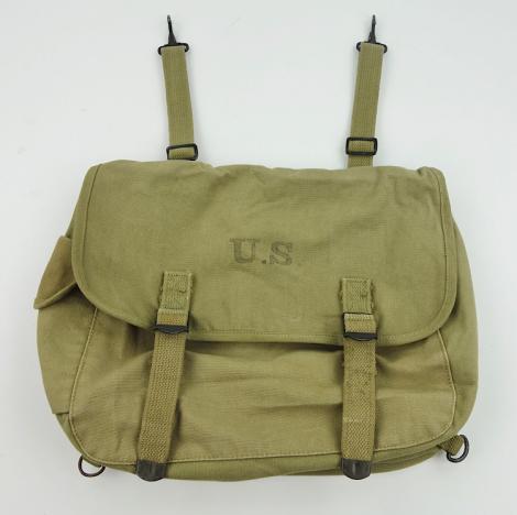 US WW2 Musset Bag Second model US WW2 backpack the so-called “Musset” bag made by “Cadin” and dated “1943” Marked with the personal laundry number inside. Overal a nice used US backpack in very good condition.