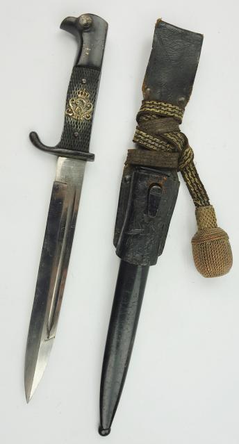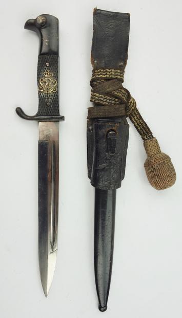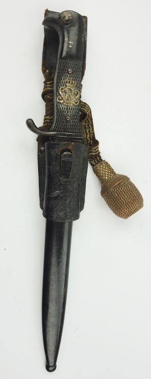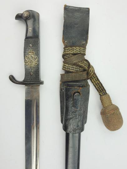 With Regimental initials on the grip with Imperal crown. Overal a very nice used bajonet in very good condition for its age!