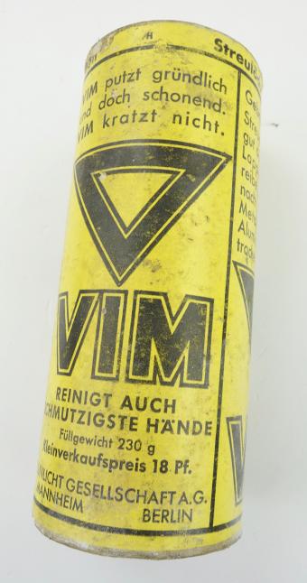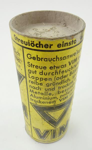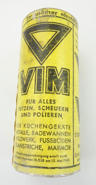 Wehrmacht era Vim (Abrasive) Made by “Sunlight Gesellschaft A.G., Mannheim, Berlin” dated May 15th “1940” Never being opened, with content. In very good condition.