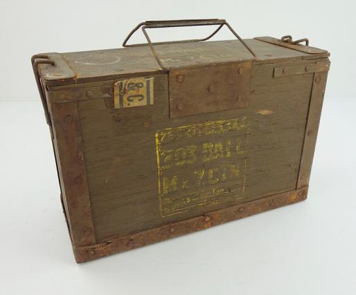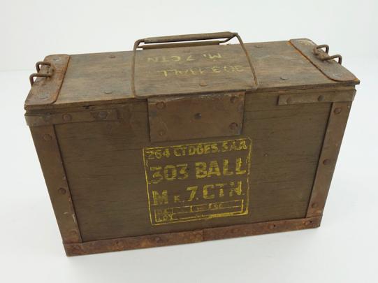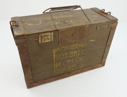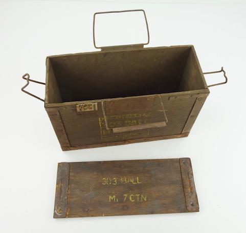 British WW2 wooden 303 Ammo Box Nice used British WW2 wooden 303 Ammo Box “1945” dated. Left behind in the Netherlands. With original wooden lid. In used but good condition.
