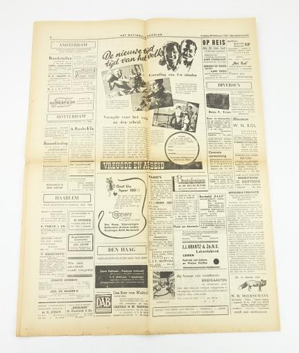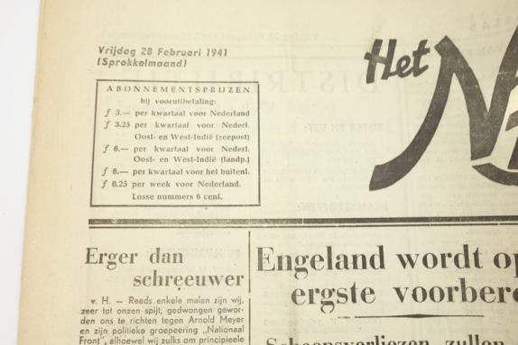 Dutch NSB newspaper Nationaal Dagblad “Engeland word op het ergste voorbereid” Dated “28” Februari “1941” Nice NSB newspaper (Nationaal Socialistische Beweging) in used but good condition.