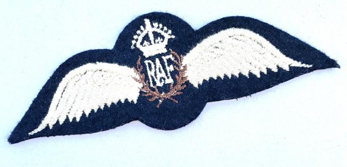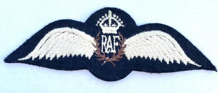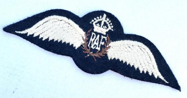 British WW2 RAF Pilot Wing Nice near mint cloth British WW2 RAF pilot wing “Royal Airforce” pilot wing for fighter, bomber all other kind of British army pilots. In very good near mint condition.