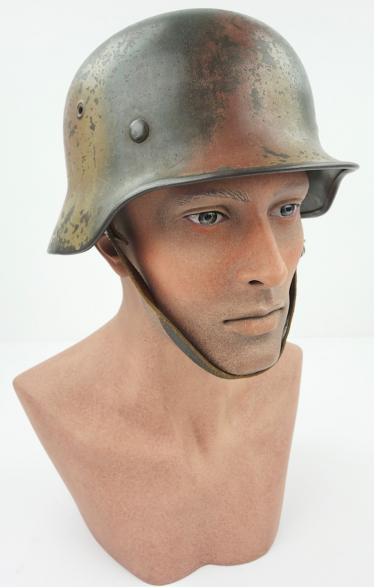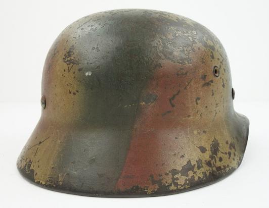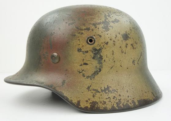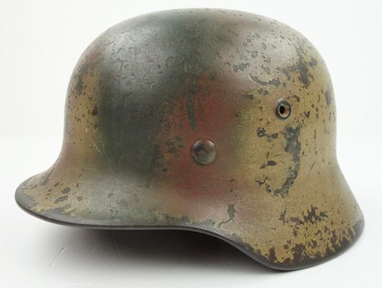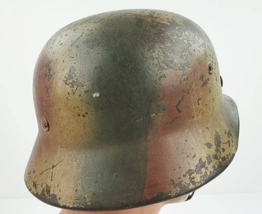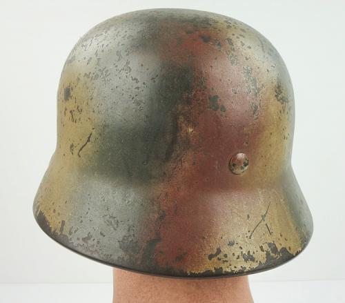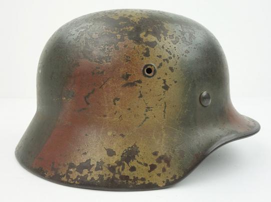 Very nice used Wehrmacht M40 three tone camo helmet. Maker code marked “EF” which is “