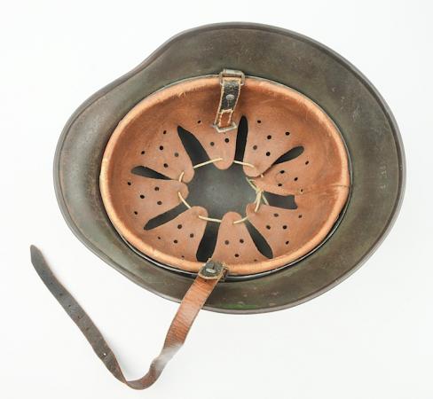 In steel lid size “64” complete with its original liner in size “57” which is the average head size during WW2 in the German Army. The helmet comes with its nice smooth leather combat helmet strap.