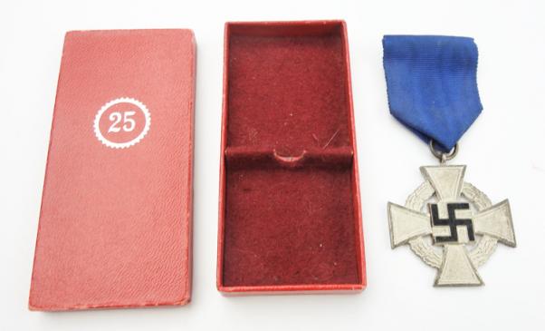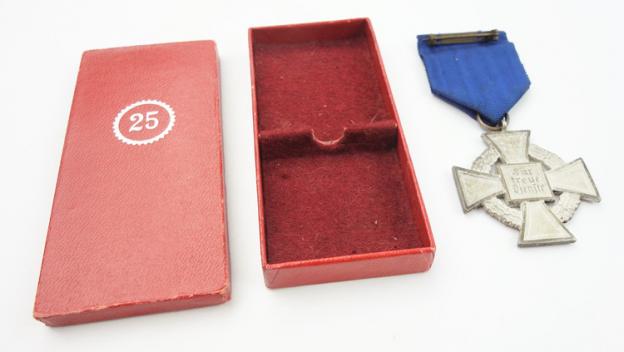 25 Years loyal Service medal in original carton box nice medal for 25 loyal service with original ribbon and in its original carton case. In good condition.