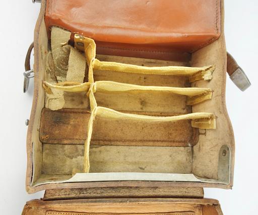 For medical tools, medicine and bandage for first aid in the field. With its original inside dividers.