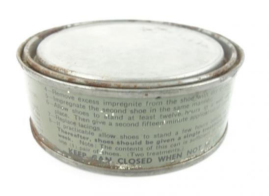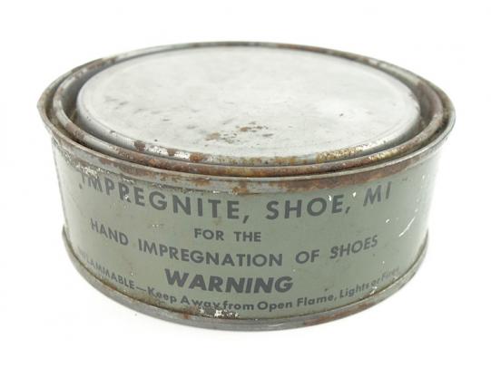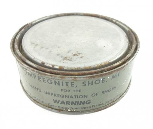 US WW2 Shoe M1 Impregnite Cream Can Nice US WW2 metal can with M1 shoe impregnite cream. With content, to make shoes water resistant. In very good condition.