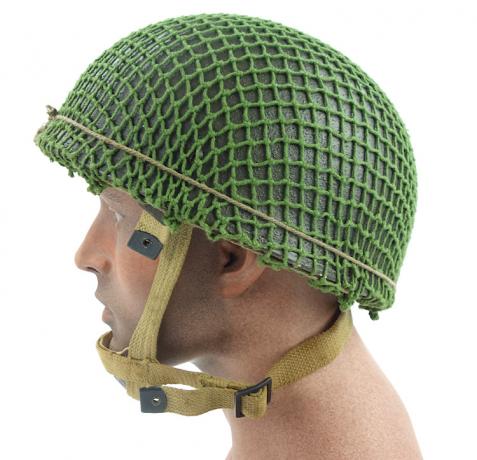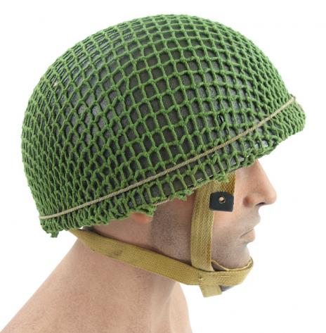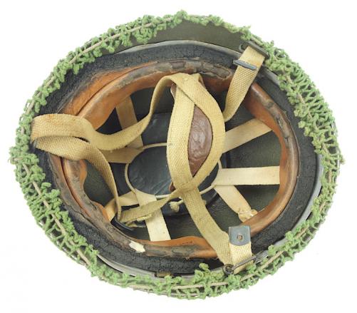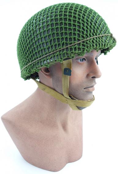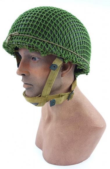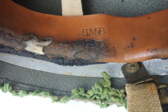 Very nice used British WW2 3th model Paratrooper Helmet maker marked “B.M.B.” which is “Briggs Motor Body’s” size marked “7,3/4” and dated “1944” it’s a nice big size and perfect for a mannequin. Comes with its webbing straps (3th Model) and camo net. Overal in used but very good condition.
