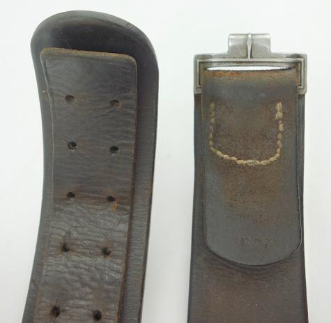 Early dated “1937” leather Wehrmacht combat belt with aluminum buckle hook.