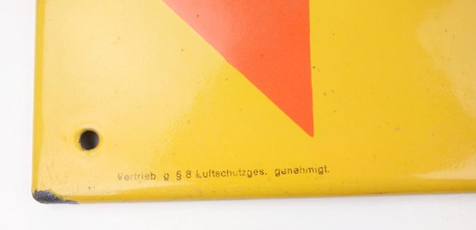 Very nice near mint Third Reich enameled Luftschutz Raum wall sign.