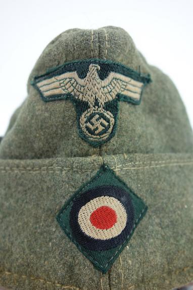 Wehrmacht Schiffchen M40 side cap with all its insignia original sewed to the cap.