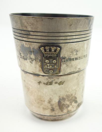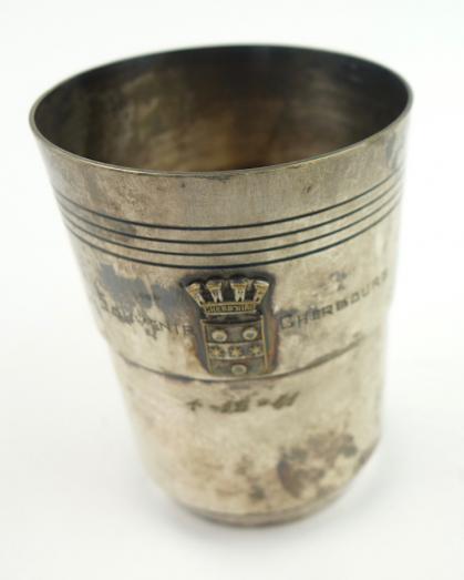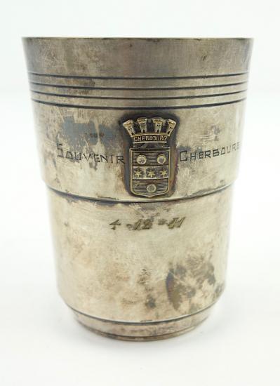 A Souvenir of Cherboure France 1941 Nice silver plated drinking cup. Bought and brought back home by a Wehrmacht soldier. A Souvenir of Cherboure France 1941 In used but very good condition.