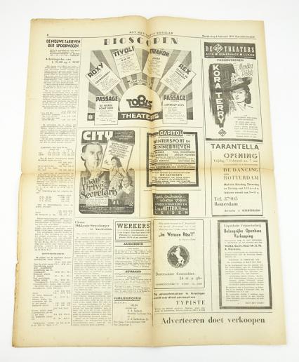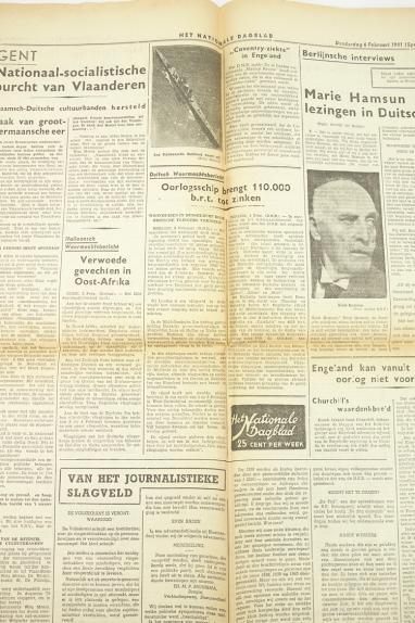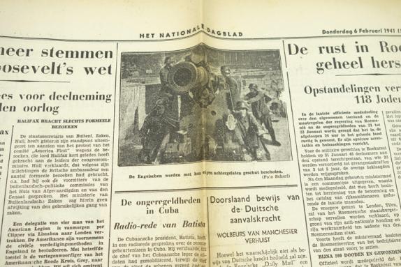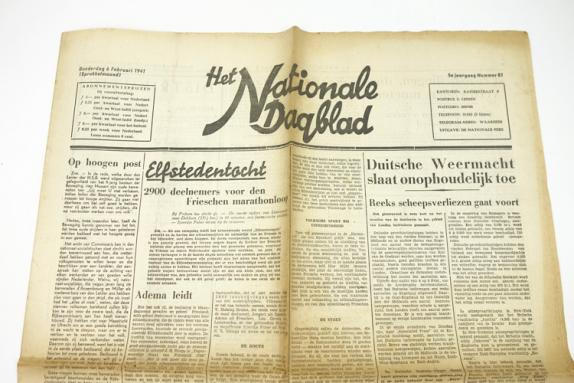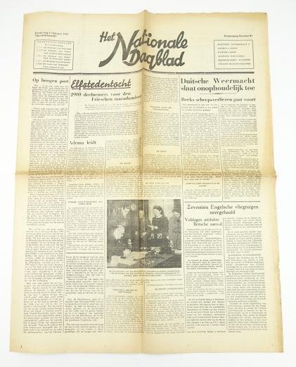 Dutch NSB newspaper Nationaal Dagblad “Duitse Wehrmacht slaat onophoudelijk toe” Dated “6” Februari “1941” Nice NSB newspaper (Nationaal Socialistische Beweging) in used but good condition.
