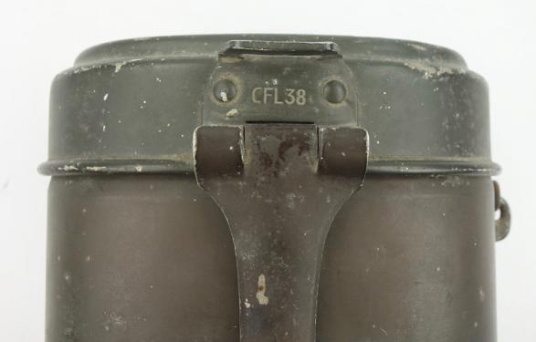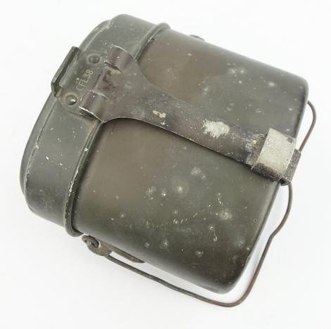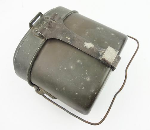 Nice early aluminium made Wehrmacht M31 mestin (Kochgeschirr) dated “1938” maker code marked “CFL” in 95% of its original field-grey camo paint.