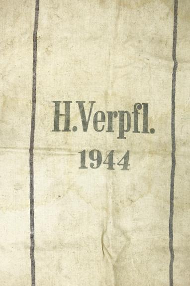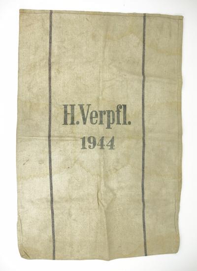 Wehrmacht Supply Bag “Heeres Verplegungs Sack” marked “H.Vpfl.” And dated “1944” these big bags were used for the German Army’s food supply’s. Nice bag with big German eagle stamp in used but good condition.