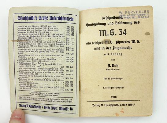 “Beschreibung, Handhabung und Bedienung des MG34, als leichtes M.G. Schweres M.G. Und in der Flugabwehr” by “Oberleutnant A. Butz” dated “1940”