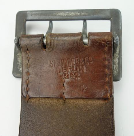 Wehrmacht NCO/Officers Belt Nice used Wehrmacht NCO/Officers belt Maker marked “Springer & Co., Berlin” and dated “1942” in a good mannequin size. In used but very good condition.