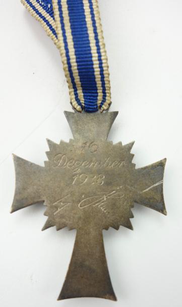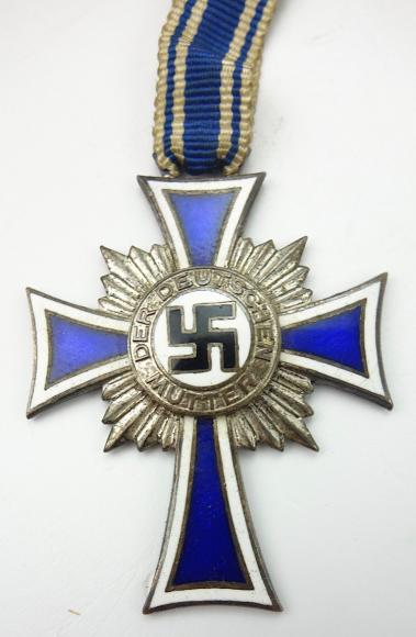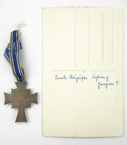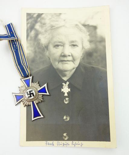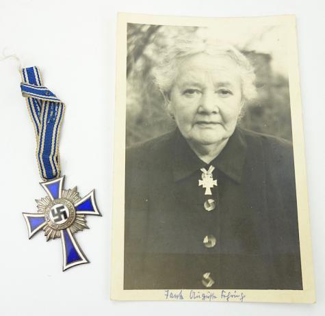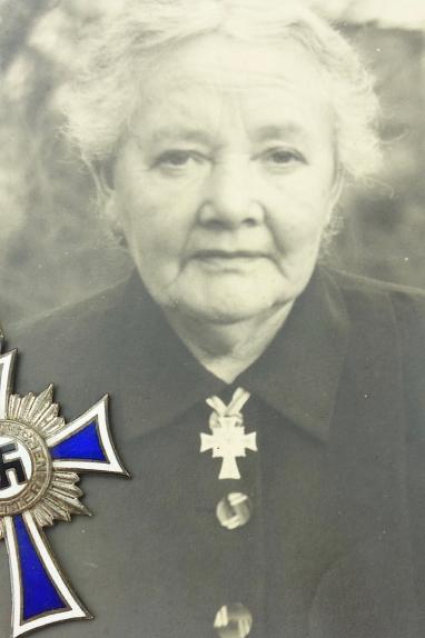 Mothers Cross in Silver with Photograph Very nice used Mothers Cross in silver with photograph of a German woman wearing the mothers cross in silver. With its original ribbon.