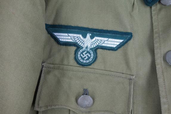 Fantastic Wehrmacht Panzer Officers summer tunic made from a “Soviet” captured shelter quarter.
