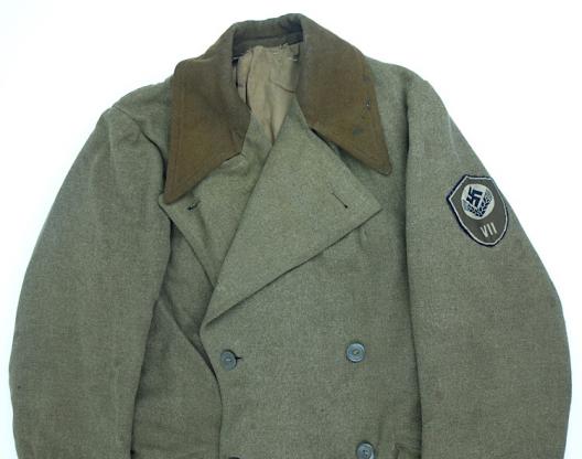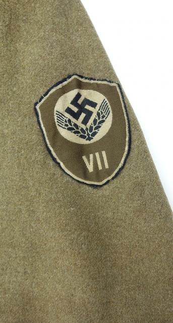 Nice used and rare to find “Reichs Arbeids Dienst” Female great coat with sleeve insignia, of district “7”