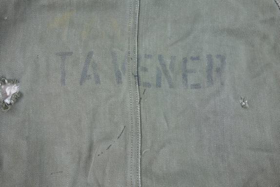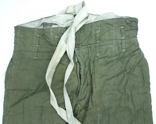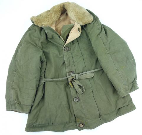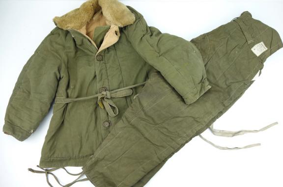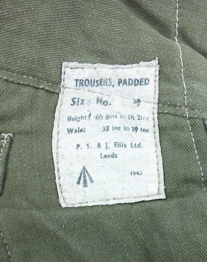 Pretty rare to find! British WW2 padded winter parka and trousers. Looks a littke like the well knows Wehrmacht padded winter clothing sets (Parka and Trousers) trousers has some damage but also a nice cloth label “P.S. & J. Ellis Ltd,” in size “4” and dated “1943” both Parka and trousers are in used but good condition. Not easy to find!