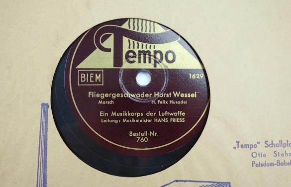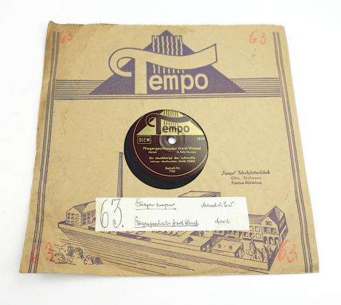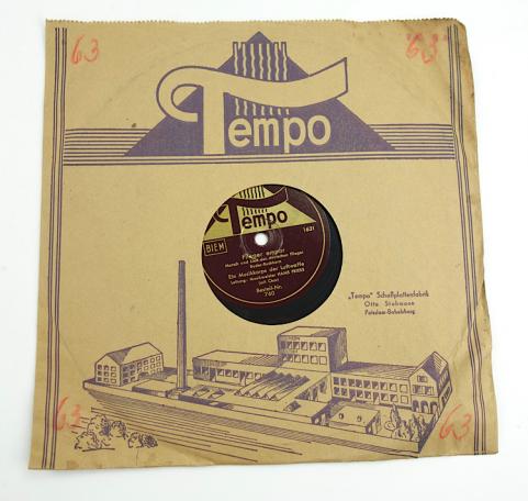 Third Reich Record Luftwaffe Musik Korps “Fliegergeschwader Hort Wessel” and “Flieger Empor” Nice bakelite record in its original paper cover.in very good condition.