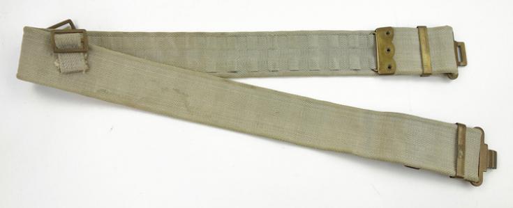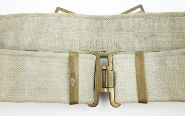 British WW2 Webbing Combat Belt Very nice British WW2 webbing combat belt Maker marked and dated “1942” Very nice British WW2 webbing combat belt. In very good condition.