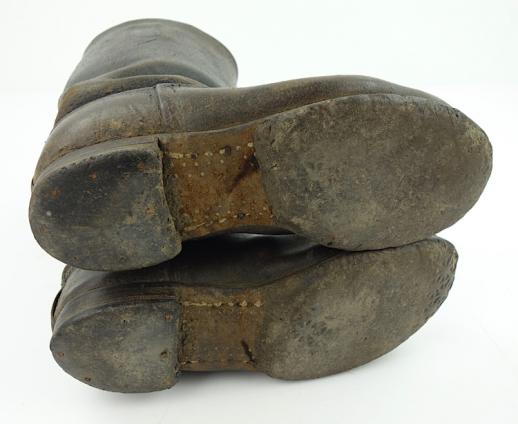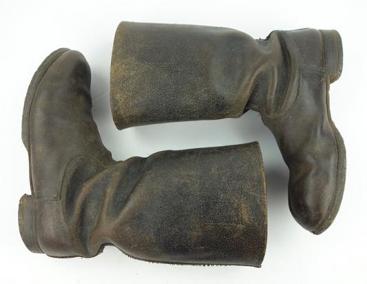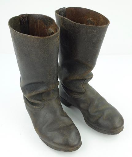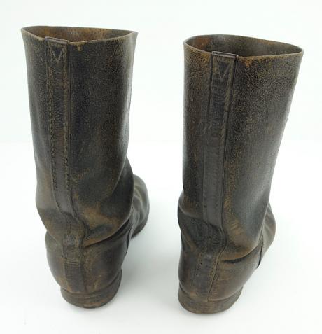 “Knobelbrecher” nice used short leather Wehrmacht combat boots. Wartime re-soled with wartime rubber sole. Leather in smooth condition. Nice size, perfect for a mannequin.