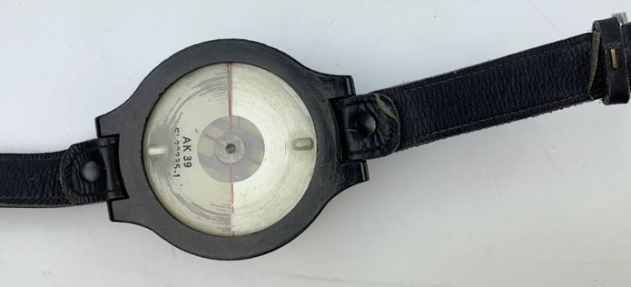 Luftwaffe Pilot Wrist Compass Very nice massive wrist compass (A.K.-39) Part of the standard equipment of the pilots of the Luftwaffe “FL” number marked, leather straps in very good smooth condition.
