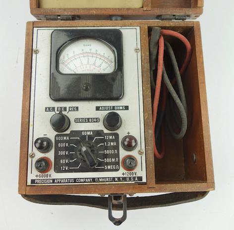 Made by the “Precision Apparatus Company, Elmhurst N.Y. U.S.A.” In very nice made wooden case. In very good condition.
