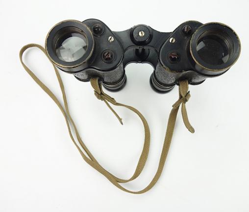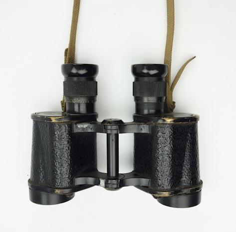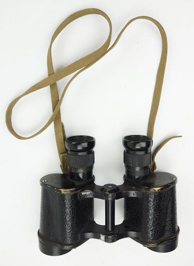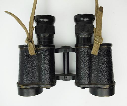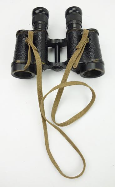 British WW2 Binoculars with webbing Strap Wonderful used British WW2 binoculars maker marked and dated, optics are good but in dirty condition. Overal complete binoculars in very good condition.