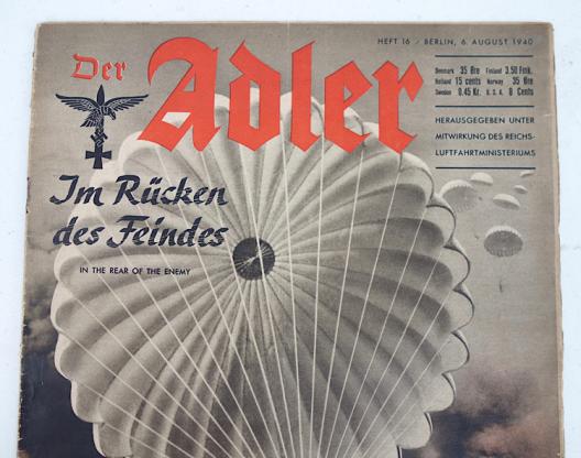 Der Adler Luftwaffe Magazine “Im Rücken des Feindes” (in the rear of the enemy) Dated “August 6, 1940” With lots a nice “Fallschirmjäger” photographs inside. In very good condition.