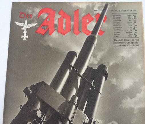 Der Adler Luftwaffe Magazine “Feuer Frei!” Heavy Luftwaffe AA Gun in action. Dated “December 2, 1941” With lots a nice photographs inside. In very good condition.