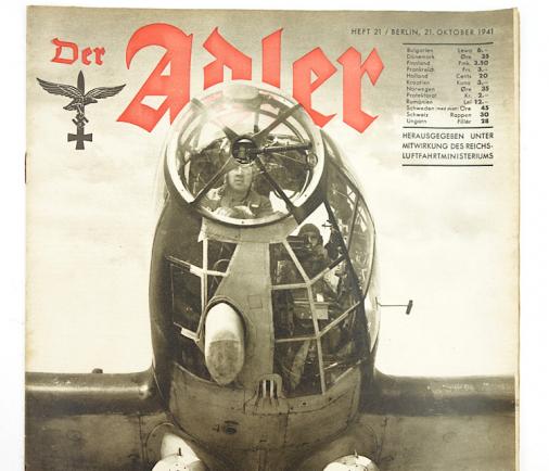 Der Adler Luftwaffe Magazine On the cover “Das Deutsche Torpedo Flugzeug” Dated “Oktober 21, 1941” With lots a nice photographs inside. In very good condition.