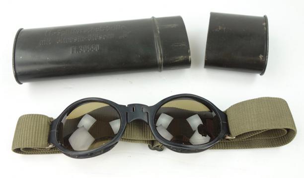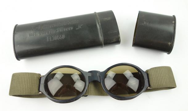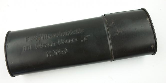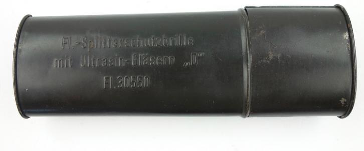 The googles comes in the Original cannister that is nicely marked 'Flieger-Splitterschutzbrille mit Ultrasin-Gläsern "D" - Fl 30550'.