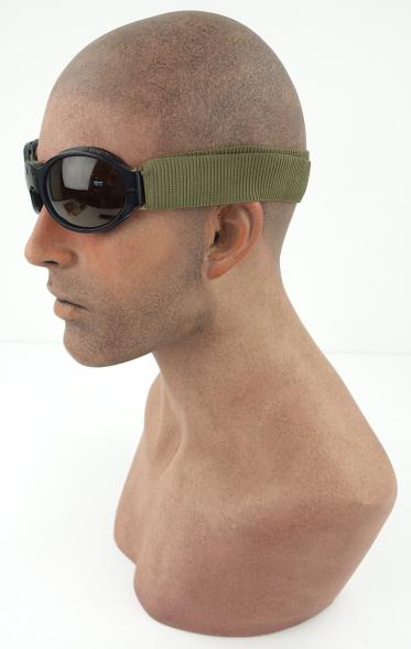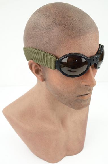 Introduced in 1944 these third pattern 'anti-splinter' goggles have moulded black plastic frames that hinge at the nose.