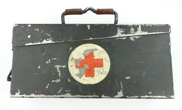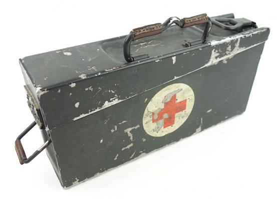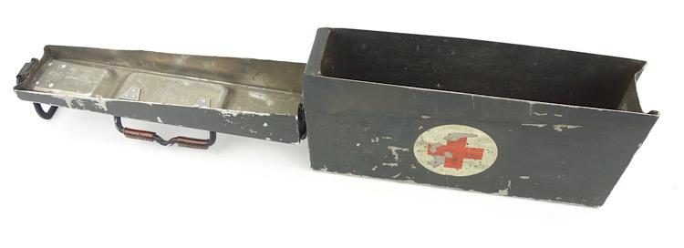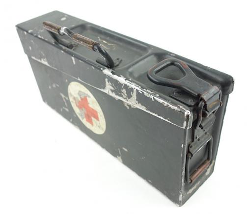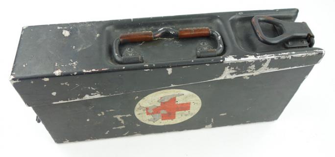 Very nice used Wehrmacht aluminum Medical MG Box. Officialy a MG34/42 ammo box, but used for medical gear, bandages etc. by a combat medic.