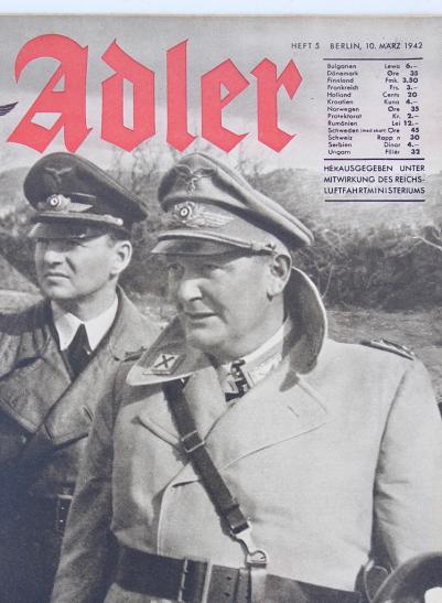 Der Adler Luftwaffe Magazine On the cover “Der Reichsmarchall in Italiën” Dated “March 10, 1942” With lots a nice photographs inside. In very good condition.