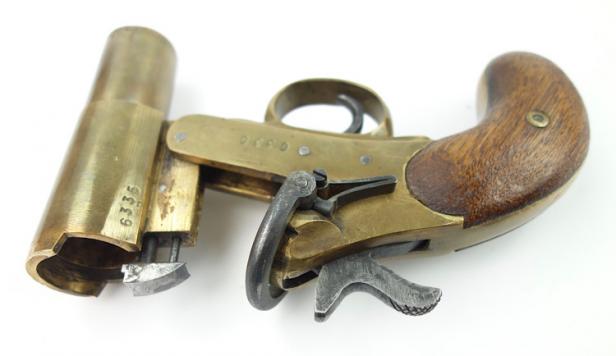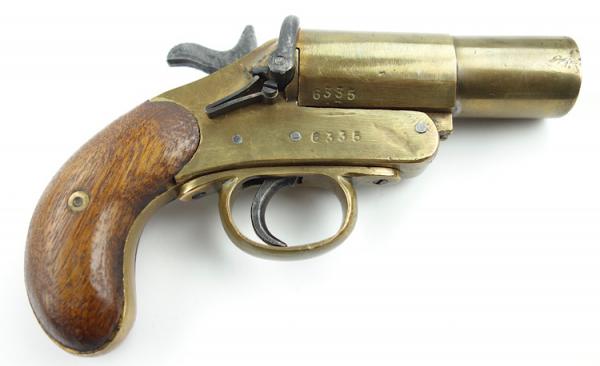 Very nice heavy quality brass made British WW1/WW2 flare gun. With full matching numbers and Britich proof stamps. Overal a fantastic British fkare gun in very good condition.