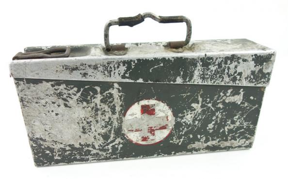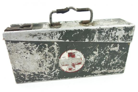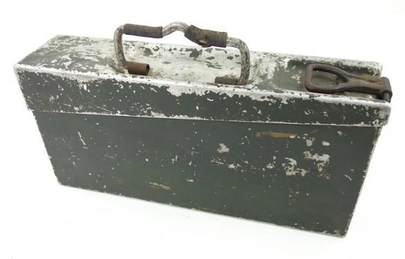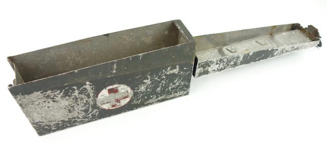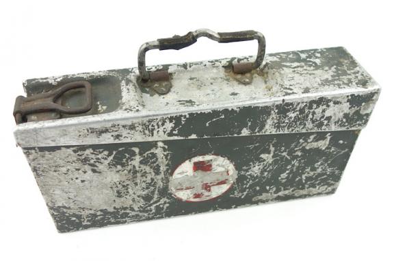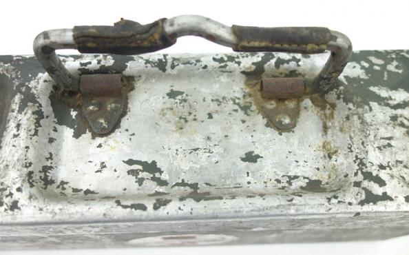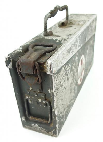 Very nice used Wehrmacht aluminum Medical MG Box. Officialy a MG34/42 ammo box, but used for medical gear, bandages etc. by a combat medic.