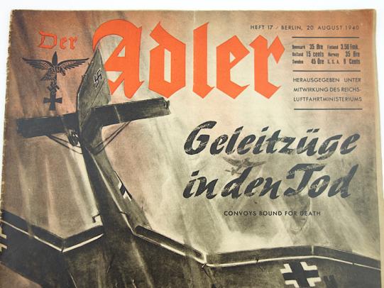 Der Adler Luftwaffe Magazine On the cover “Geletzüge in den Tod” Dated “Augustus 20, 1940” With lots a nice photographs inside. In very good condition.