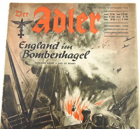 Der Adler Luftwaffe Magazine On the cover “England im Bombenhagel” Dated “September 2, 1940” With lots a nice photographs inside. In very good condition.