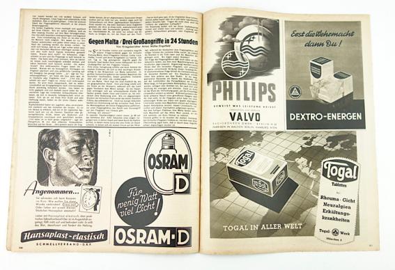Der Adler Luftwaffe Magazine On the cover “Der Schnellste Jäger der Welt, Focke- Wulf FW190” Dated “May 19, 1942” With lots a nice photographs inside. In very good condition.